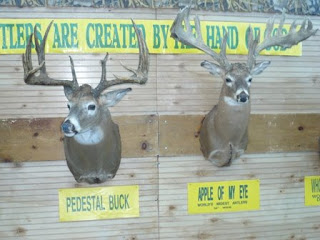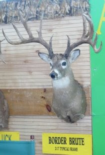 You maybe can’t quite make out these signs but the left one is like…largest ever antlers on a girl deer? Except, wait, no, girl deer don’t have antlers, so, since I can’t read it, maybe largest ever antlers on a deer shot by a girl. Or, well who knows. Maybe just a really lucky shot. Lady Luck smiled on the hunter?? I’m not explaining the one on the right. I’m exhausted and I’ve lost my magnifying glass. And bottom line, cool antlers…if you like antlers.Say yes or no, I’m not going to judge you.