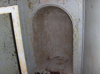I jumped and squeaked when I saw that guy. Really look at the picture above. Two bunks. So you know it was meant for two at least. Ten wedge shaped cells on each of three floors. Thirty cells. Up to six prisoners per cell. Do the math people. 180 prisoner capacity. And one jailer for all of them.
