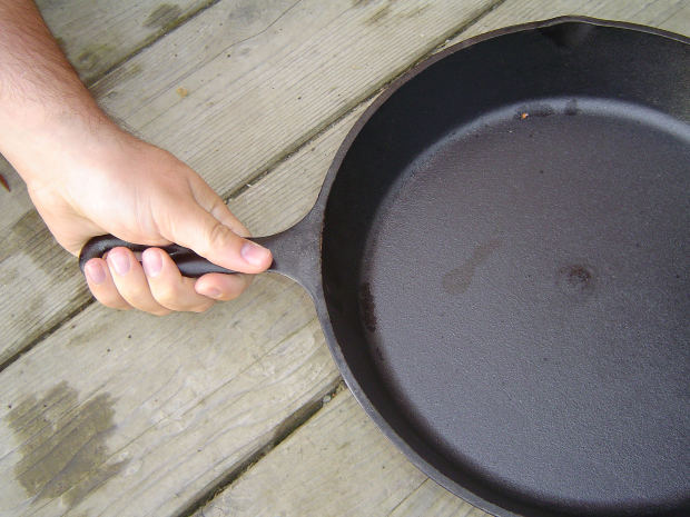 Speaking of cast iron, we had a lot of perfectly seasoned frying pans. (Occasionally called skillets in my house, but not